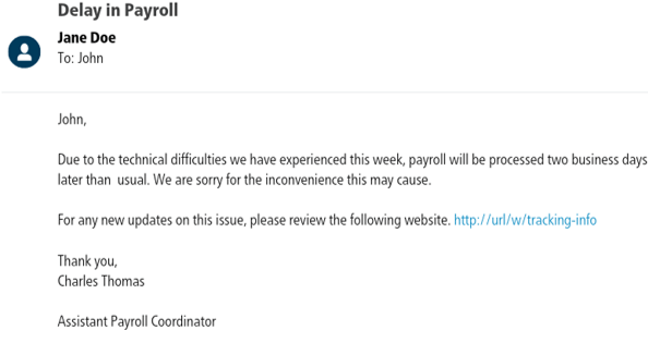 Is the greeting general or vague? Is the greeting “valued customer” or Dear (insert title here) ![]() |
