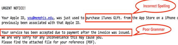 Check for spelling errors Attackers are less concerned about spelling or being grammatically correct ![]() |