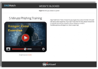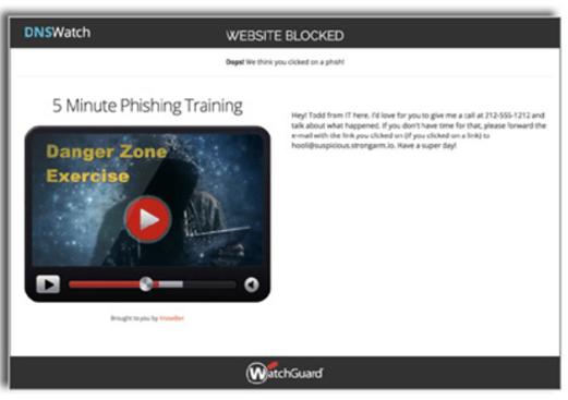 At FortiTech, we also recommend augmenting SAT with simulated phishing attacks to test the effectiveness of training and allow you to tailor it further. We conduct this on a monthly basis for our SAT clients and couple this with WatchGuard’s DNSWatch software, which, when triggered by a known phishing site blocks access to the site and then automatically plays a training video to educate the user on the dangers of phishing scams.