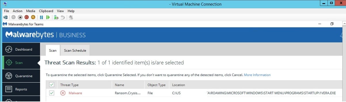 The culprit was Veracrypt a new variant of the Crysis ransomware that’s been out in the wild for about 3 months. We located the entry point of the virus, the hackers logged in remotely to their environment through an internet facing windows computer using a genuine users name and password discovered through a dictionary attack.