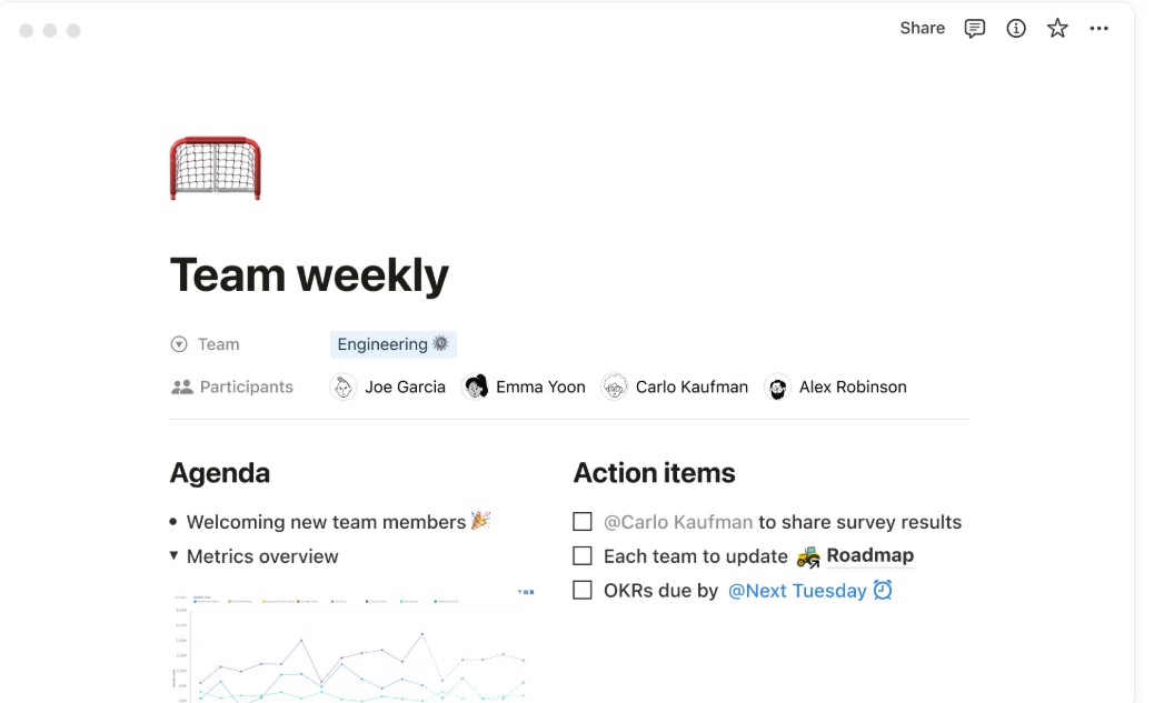 Notion supports real-time collaboration, making it easy for teams to work together within shared pages and databases. Comments, mentions,