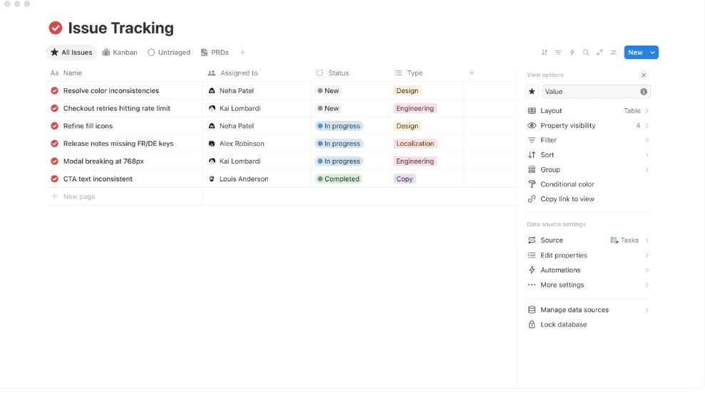 Notion’s database functionality allows businesses to track and organise information in a structured way. Common small business use cases