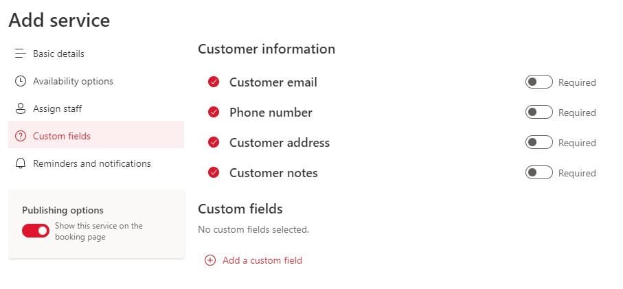 Next you will be abel to include any custom fields such as whether the customer is required to leave you some notes when making the
