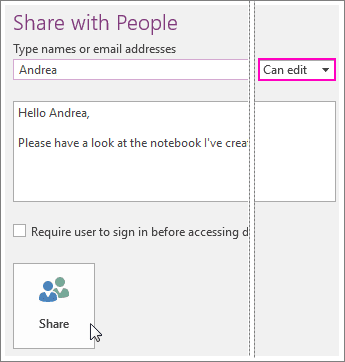 3. In the drop-down box on the right, choose whether each person can edit or just view your notebook.