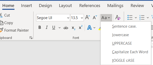 - click on the "Aa" pull-down menu in the Home Ribbon