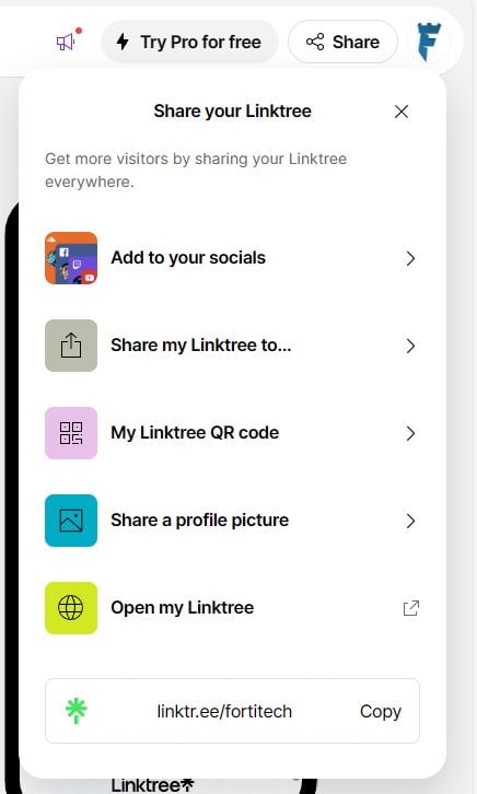9. Now you are ready to share your profile, head up to the Share option on the top right and you will be presented with a number of ways to publicise your Linktree, you can check our very own Linktree here and of course if you don't want to go through the process of creating your own then we are more than happy to undertake the task for you, including the setup of any Pro / paid Linktree accounts which require more indepth setup, just give us a call on 1300 778 078 to discuss your needs.