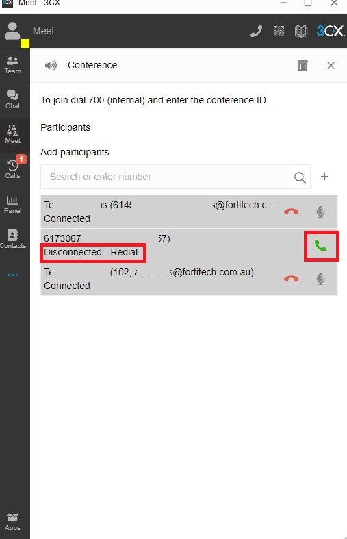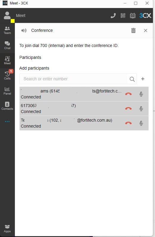 Perfect for client meetings or bringing multiple parties into one call. It is important to note that you are still limited by the amount of concurrent calls that your 3CX system is licensed for as each participant is added counts as a new call, it is a good idea to check this beforehand.